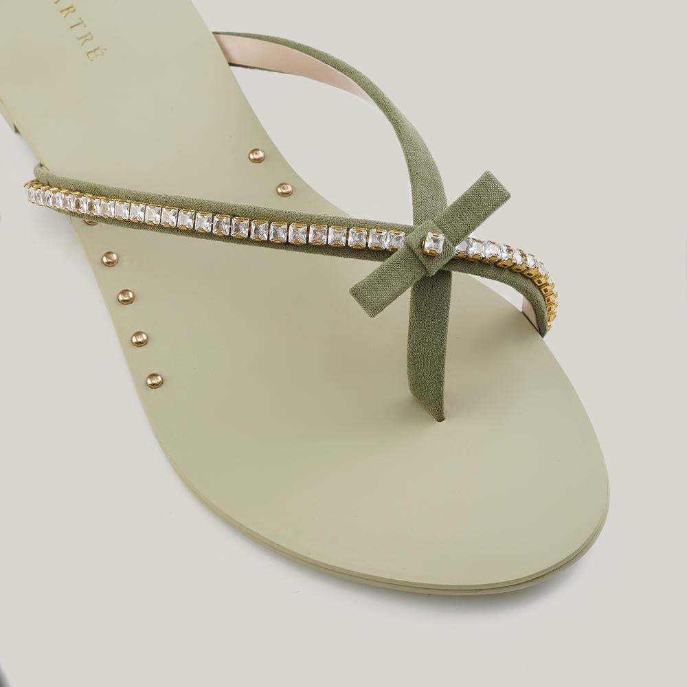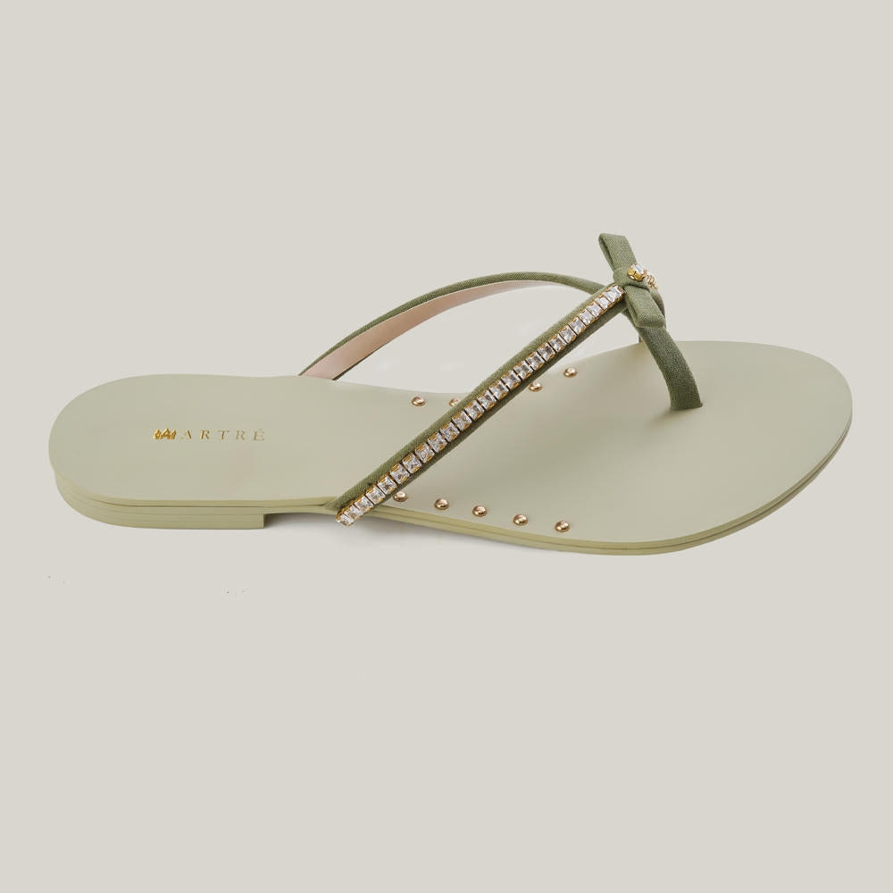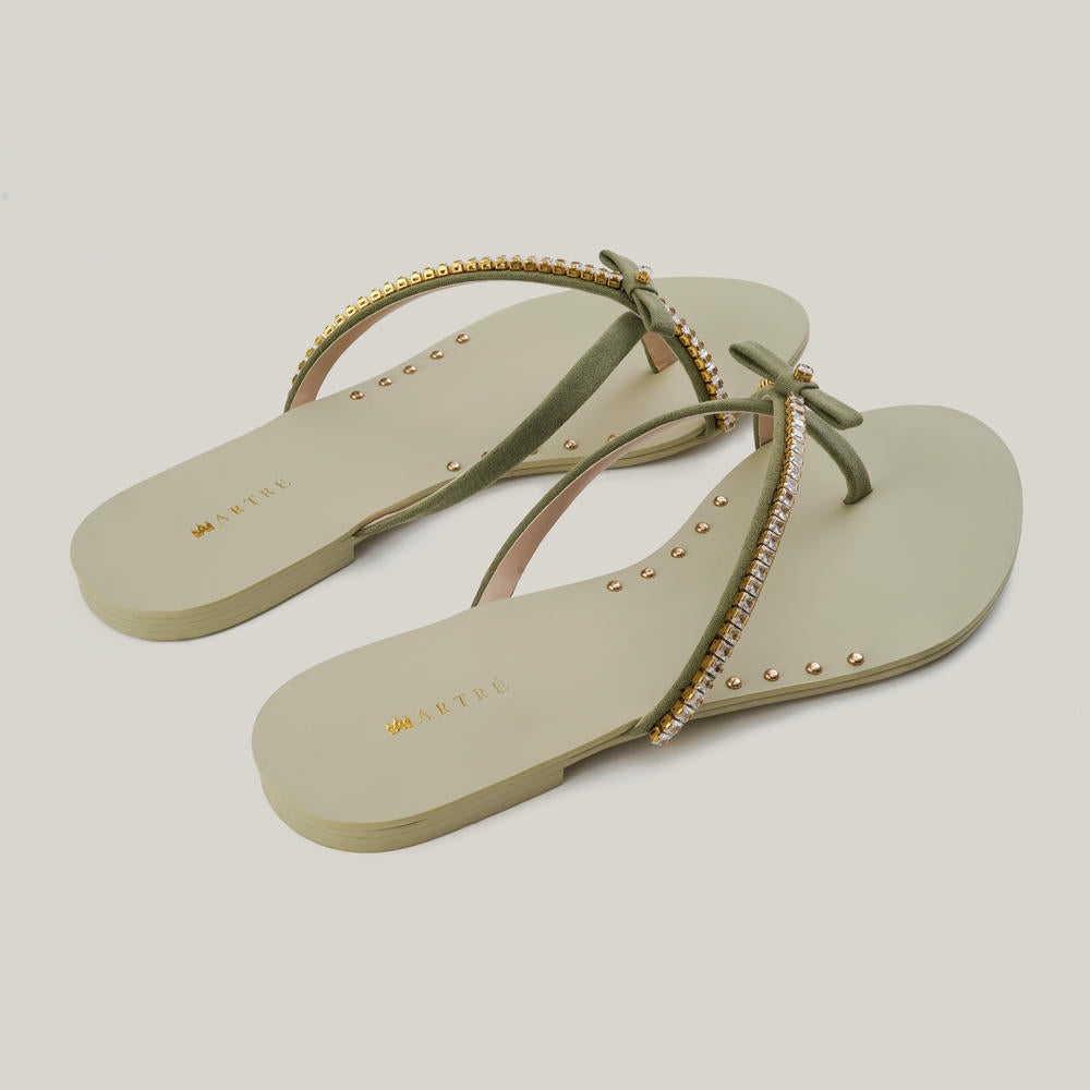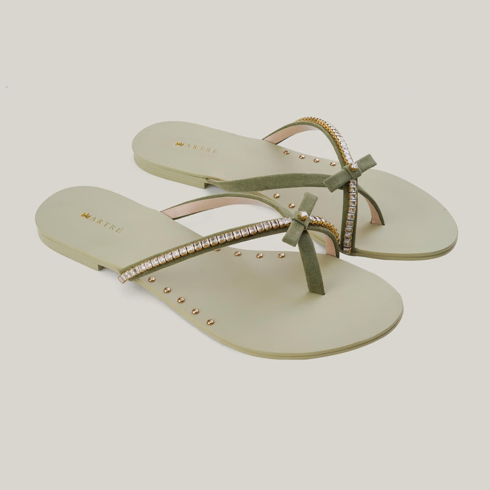 Defined by refinement and grace. A delicate bow anchors the form, while a strand of diamanté rests with meticulous precision across the surface. Crafted on a seamless sole, the design unites comfort with artistry.
